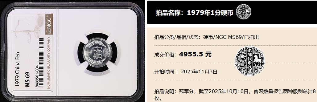 它在11月3日举行的一场拍卖会上,它就以4955.5元被拍出。之所以能拍出这样高价,关键在于其顶级品相与极度稀缺的量。