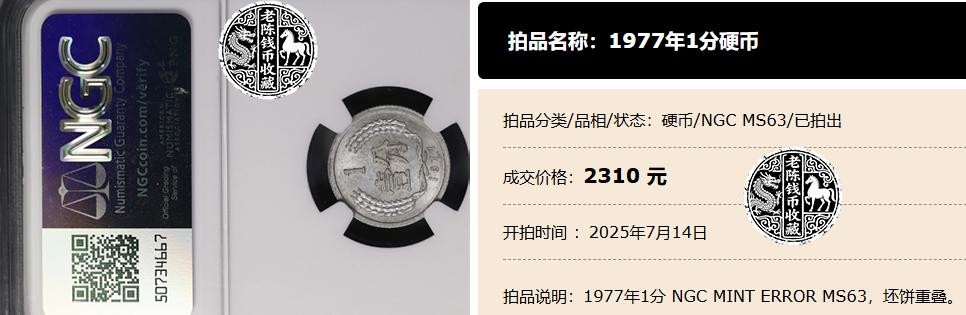 此前就有这么一枚硬币,因为这一点。在拍卖会上以2310元的价格被卖出。