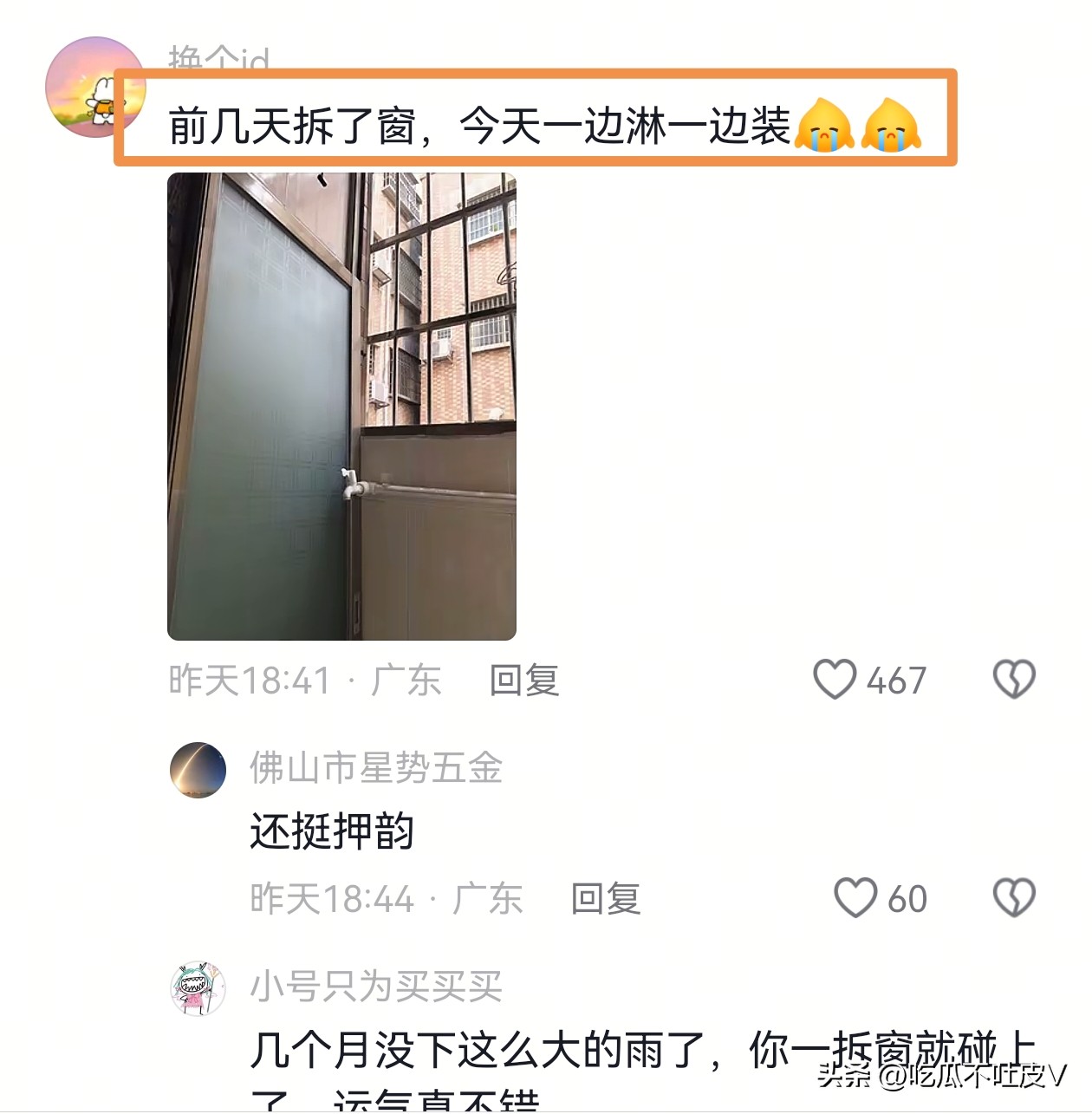 今天是一边哭一边装吧!你说谁让你拆窗呢?找罪受是吧[大笑]