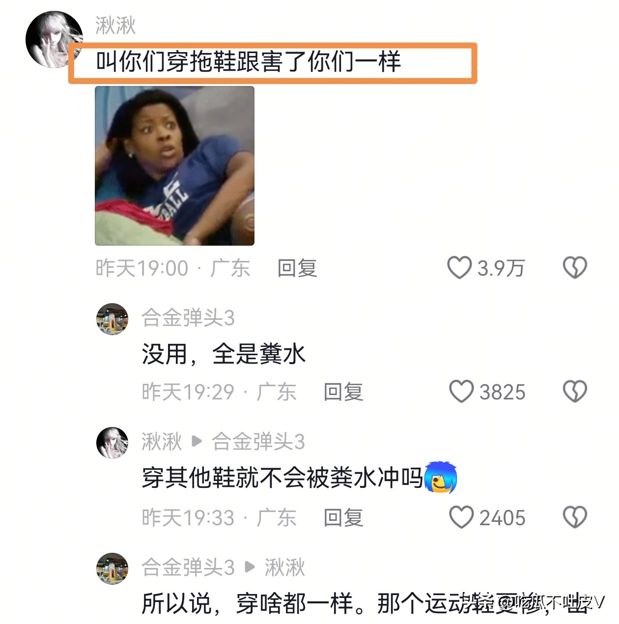 没人跟我们说来广州玩要穿拖鞋啊!话说穿了拖鞋就不用踩粪水了吗[大笑]
