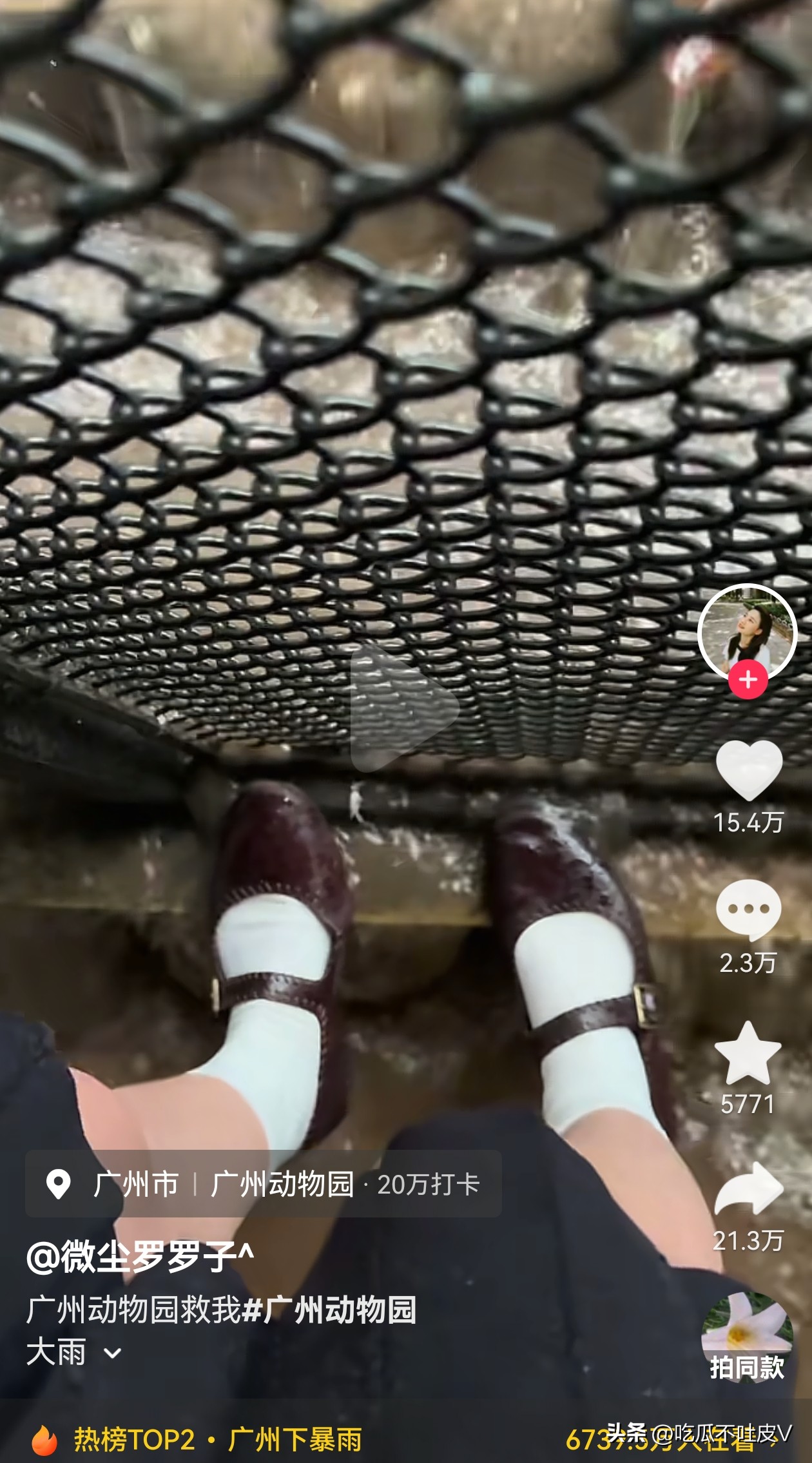 温馨提醒各位宝子:去广州动物园玩,千万别信广州的晴天,出门必带拖鞋!不然就会和这位女生一样,穿着小皮鞋在雨里上演“踩水名场面”,谁来谁知道,主打一个又惨又好笑!