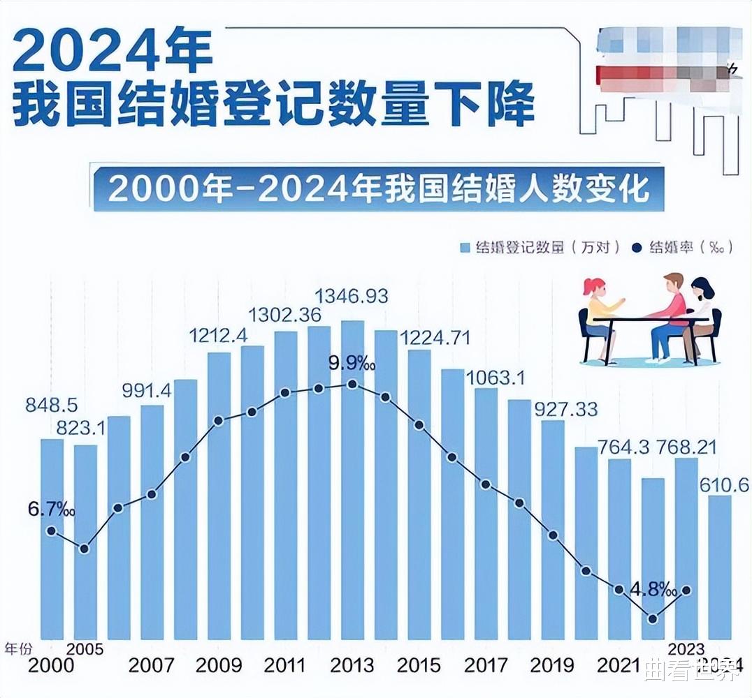 如今的婚姻现状着实令人触目惊心,结婚登记数量大幅下降近乎 “腰斩”,而离婚率却高达 58%,一场离婚狂潮似乎已势不可挡。今年一季度全国结婚率再创历史新低,近两年来结婚人数呈断崖式下跌,九年降幅达 49.3%。据民政局统计去年登记结婚的仅有 610 万对,较上一年暴跌 20%。与之形成鲜明对比的是离婚数量飙升至 351 万对。这意味着每两对新人步入婚姻殿堂,就有一对夫妻分道扬镳,甚至出现离婚都预约不上的情况。