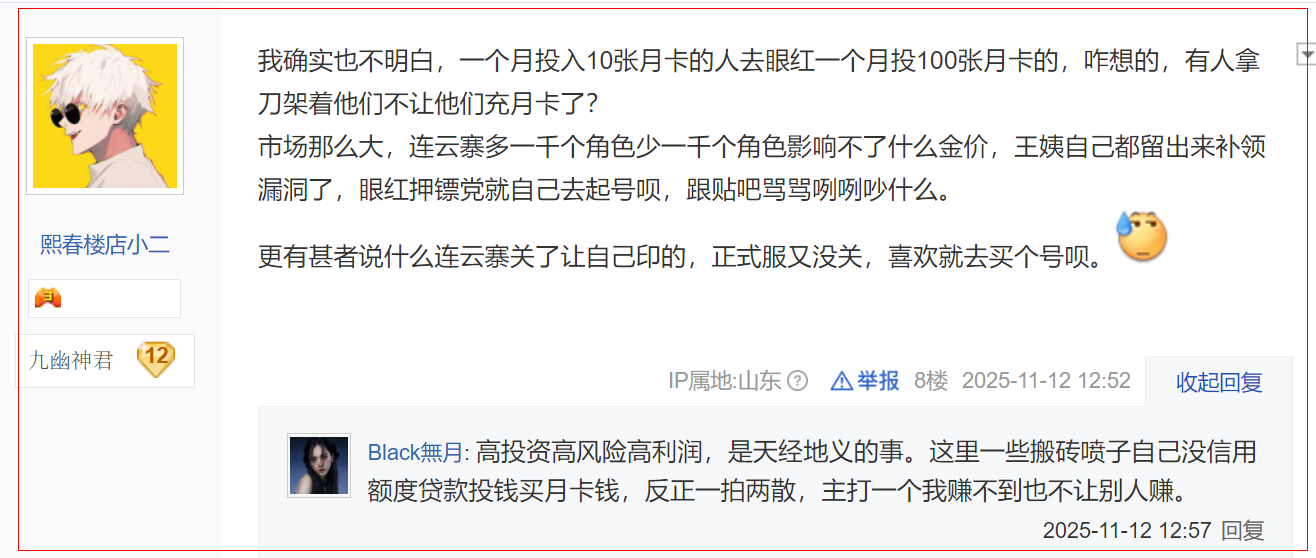 即便官方持续出手维稳,这种“勾心斗角”的氛围仍让不少从业者倍感压力,那位月入11万的玩家便吐槽,这样的竞争强度“比炒黄金还耗费心神”。