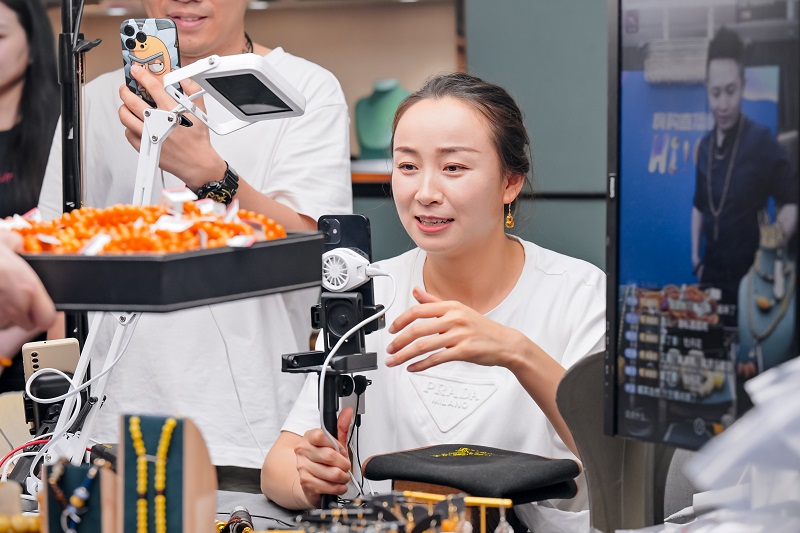 本次活动还以琥珀行业为主,以整个市场为基奠,邀请了20家行业头部直播商家入驻,进行现场直播,并配套有选品、展示、打包、发货等环节。近年来,电商直播带货正处于风口,这一新型商业模式,是带动销售突破的重要方式,因此松岗琥珀紧密结合了线下销售与线上直播,还将在本次活动中寻找出“优秀带货达人”,挖掘、培育更多行业内的精英。