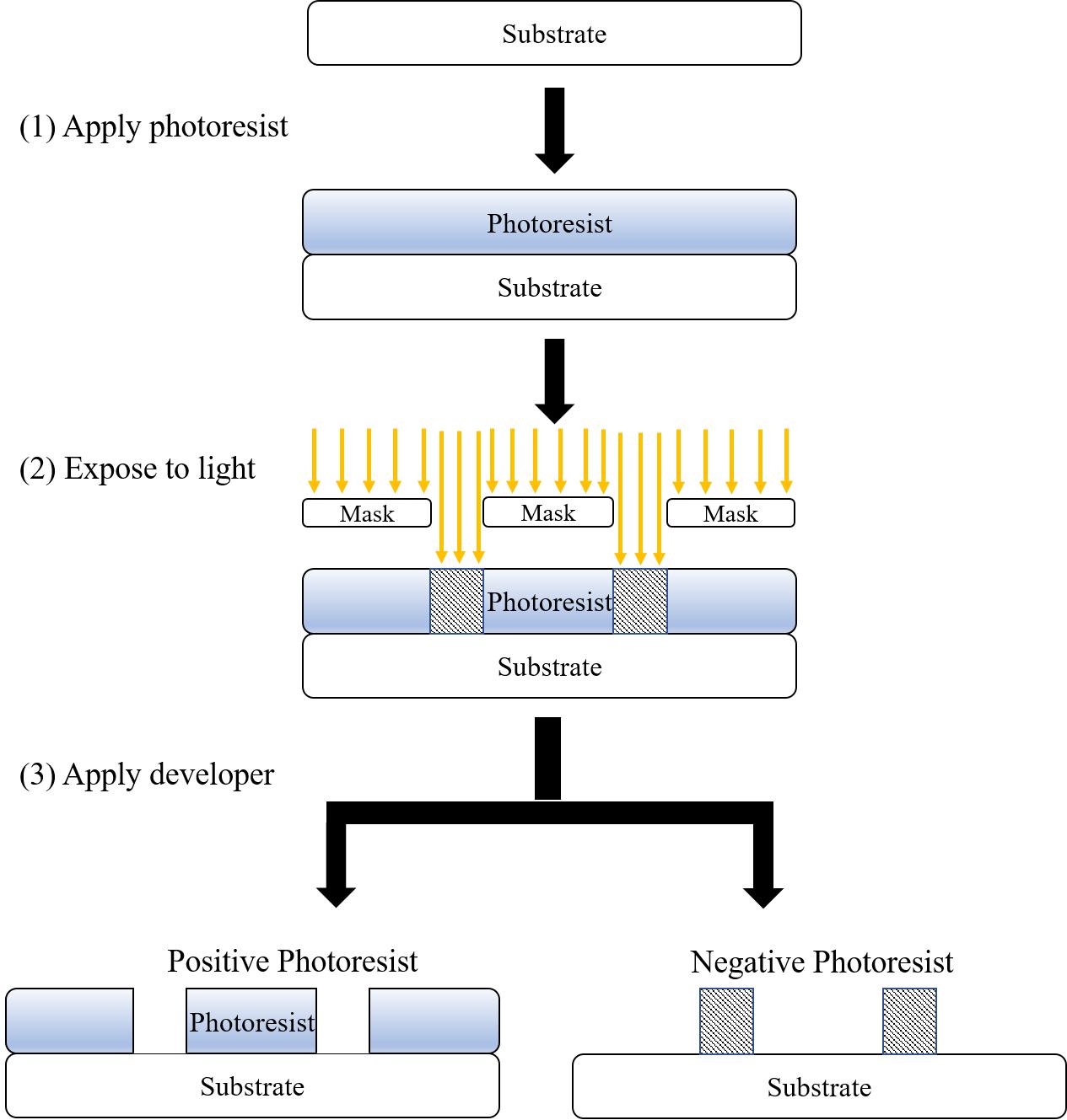 我们首先需要明白光刻胶是晶圆制造的必备耗材。光刻胶有一种特性,遇到光后可产生固化的化学反应。在掩膜板的帮助下,光刻机照射到掩膜板下方的光刻胶,可以生成电路纹案。再通过显影、刻蚀的工艺将这些纹案变成电路。在晶圆制造的整个制作过程中,需要经过多次这样的操作,可想而知光刻胶有多重要。