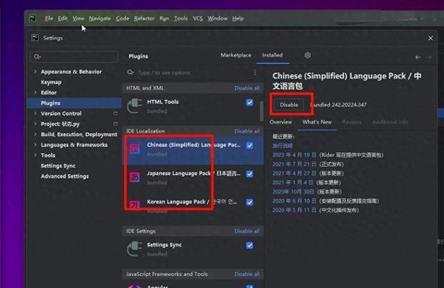 粉丝还说:我奇怪的是明明pycharm上对应的插件文件,我都从文件夹删除了,汉化插件竟然一直残留着,又不提供卸载选项,都怀疑是不是24.2内置了,去官网翻了一下更新日志,也没有说内置汉化插件。
