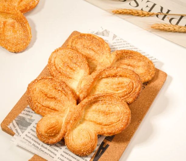 烤箱提前预热到一百八十度,中层烤二十分钟左右,直到蝴蝶酥膨胀起来,表面变成金黄色。刚出炉时它们还软软的,别急着动,等凉透了才会变得特别酥脆。这样做的蝴蝶酥,虽然没有西点店里那么规整对称,但每一片都带着手工的温度。咬一口,酥皮扑簌簌地落下来,满口都是黄油和芝麻的香气。在湖南人家的茶几上,它常常和芝麻豆子茶摆在一起,成了一道独特的中西合璧茶点。孩子们放学回来,抓几片塞进嘴里;邻居来串门,端出一碟,配着热茶闲聊几句。这种朴素的甜点,就这样融入了寻常日子里,成了记忆里温暖的味道。