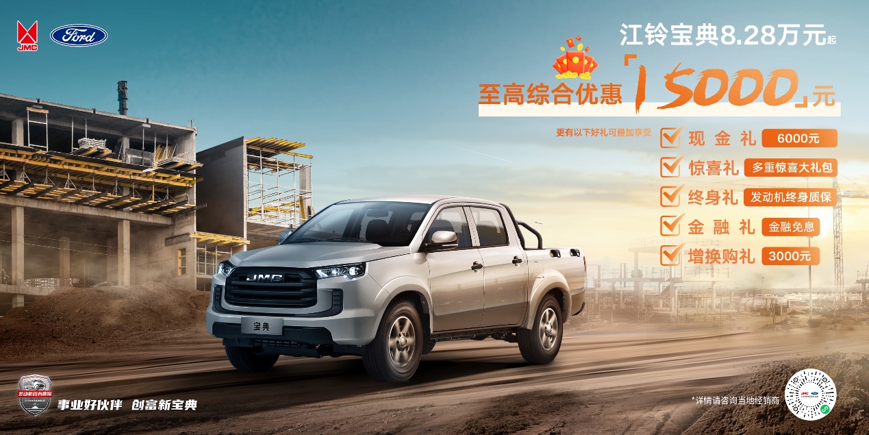 为了回馈广大用户,江铃宝典在6月推出了超值优惠活动。用户购买宝典可尊享6000元现金优惠、发动机终身质保、3000元增换补贴、多重惊喜大礼包四大福利,至高综合优惠15000元。这些优惠政策不仅降低了购车门槛,还让消费者在享受高品质汽车服务的同时,减少了维修和保养的成本。