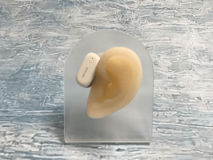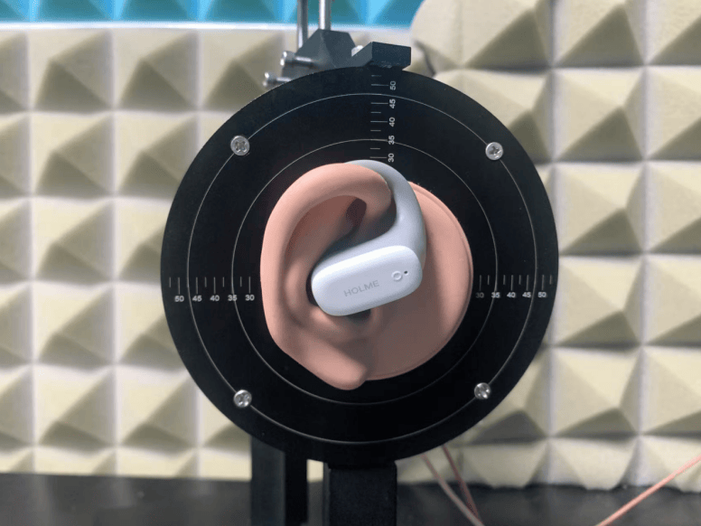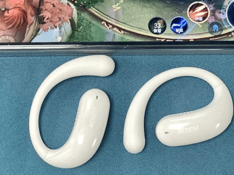 虹觅Olite的佩戴同样比较轻便。采用ㄥ26°工学弧面结构,贴合度自然,适合日常上班和走路使用。单耳7.2g,重量控制良好,短时间佩戴没有明显压力。但耳挂的稳定度稍有欠缺,在运动等剧烈动作中会有轻微晃动,适合对稳定性需求不高的轻量使用场景。整体舒适度尚可,但对耳朵的贴合度不如西圣那么紧密。
