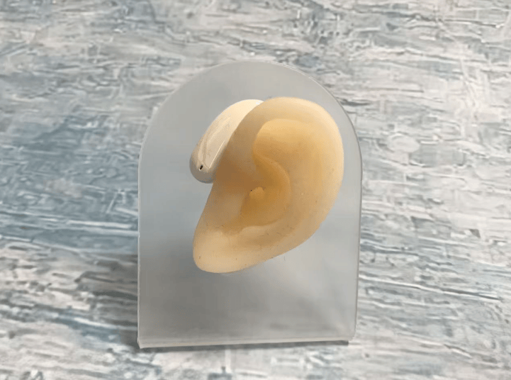 在佩戴体验上,西圣OLite2的设计比较成熟。采用ErgoFit2.0结构与黄金三点式贴耳方案,能与不同人群的耳廓完美适配,稳定性也不错。耳挂选用亲肤液态硅胶包裹记忆钛丝,柔软度和支撑性兼具。单耳重量约7.5g,长时间佩戴下来压力较小,整体体验轻盈舒适,适合需要经常佩戴耳机的人。
