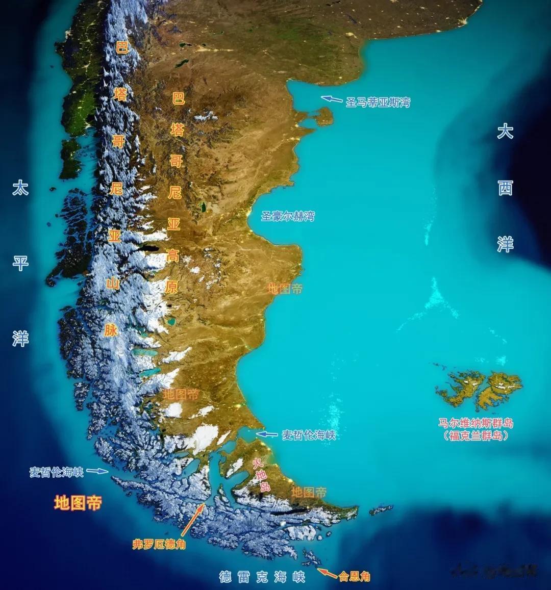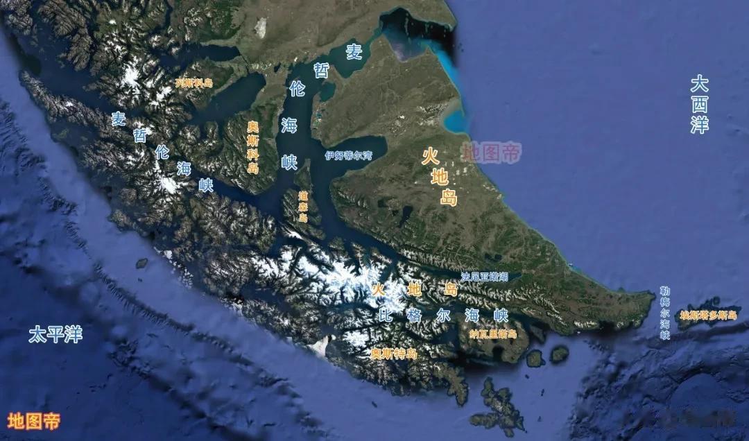 火地岛群岛,位于南美洲东南部,隔麦哲伦海峡同南美大陆相望,距南极洲的南极半岛约800千米。火地岛。