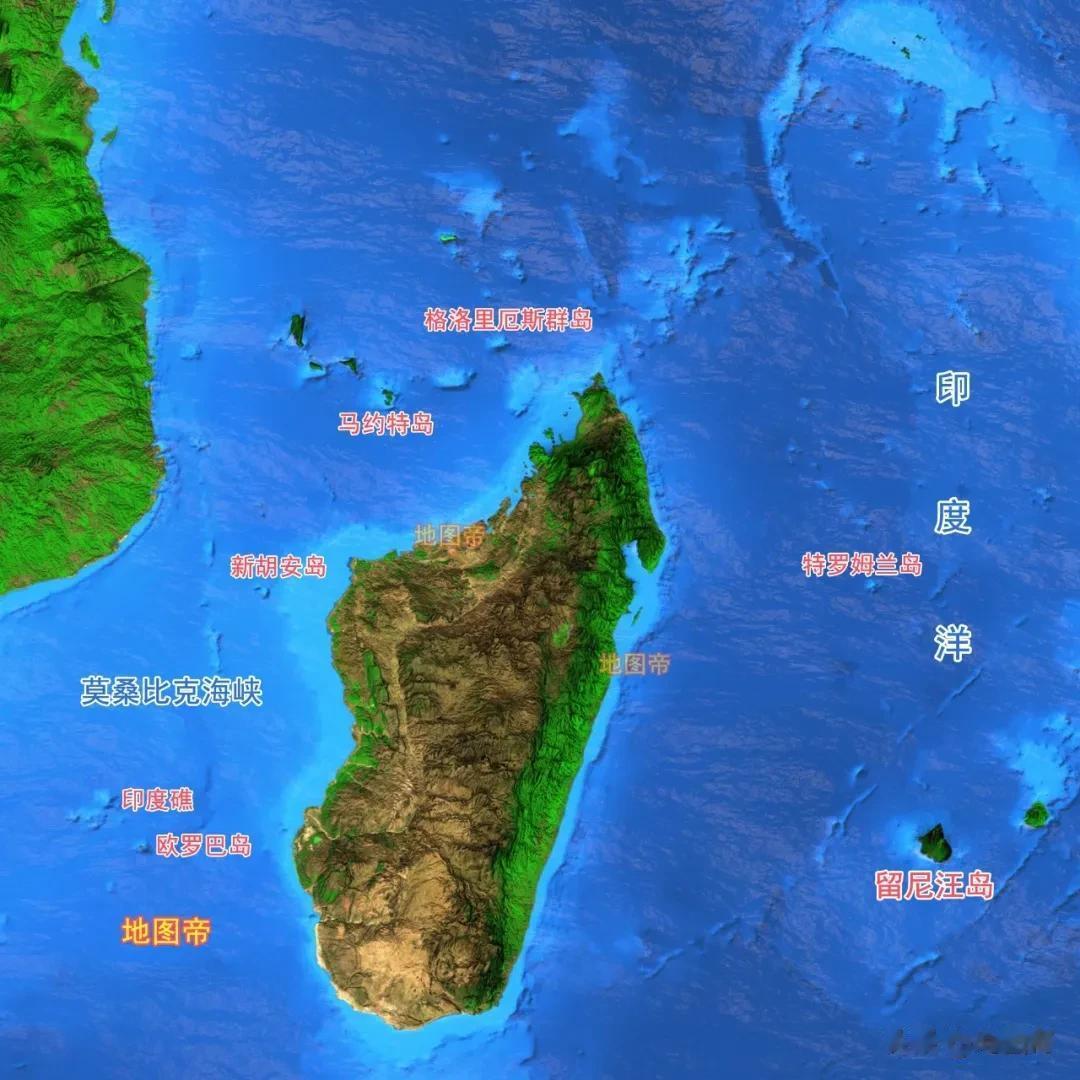 非洲面积不小,但大岛不多,除了马达加斯加岛,其他几乎都是小岛。