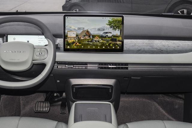 纳米06的内饰采用“T”字形布局,中控台向驾驶员一侧倾斜,操作便捷。12.8英寸悬浮式中控屏(全系标配)集成大部分功能,减少物理按键,使内饰更显简洁。用料方面,中控台上方为软质搪塑材料,下方为硬质塑料,符合该价位段预期;高配车型提供双色内饰选项,搭配皮质方向盘和座椅缝线,质感提升明显。