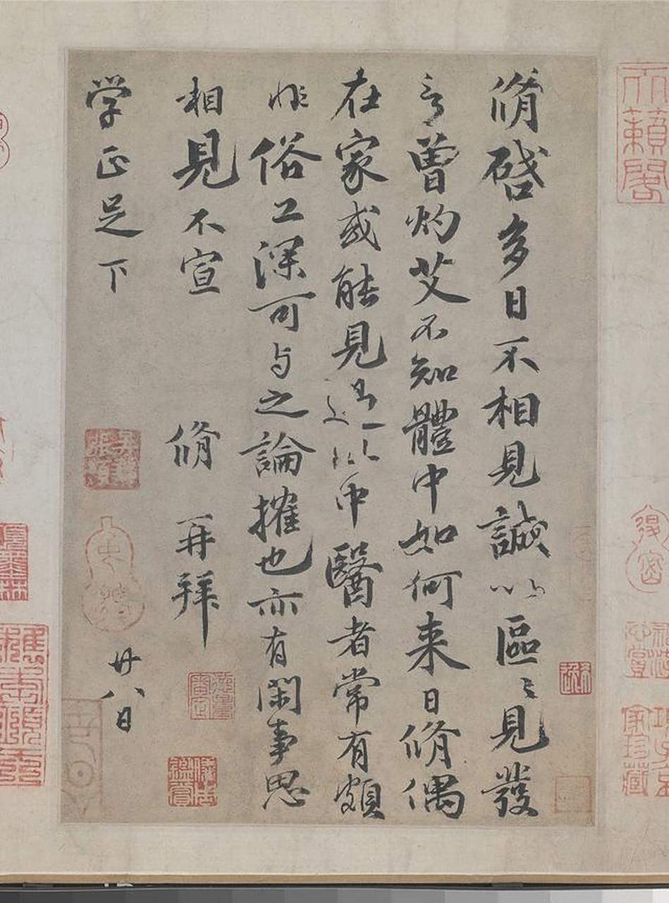 6. 蔡襄,老大哥压轴: “宋四家”里最年长,任务是把唐朝“法度”翻译成宋朝“意趣”。他的《自书诗卷》温润醇厚,结体端庄却不失灵动,像穿西装跳街舞,扣子全系,动作再浪也露不了肉。我第一次看,脑子里只有一句话:原来端重也能这么撩。