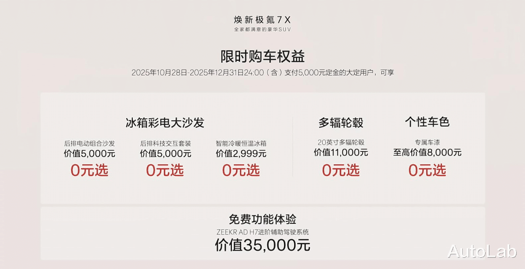 最近友商们定SKU翻车的案例太多,所以极氪这次没有在冰箱彩电大沙发上用什么刀法,而是一股脑全部送。