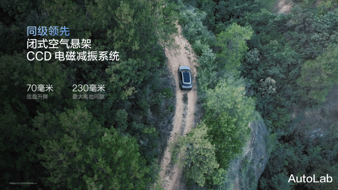 在底盘上,新车优化了液压衬套,标配CCD电磁减振系统;并且高配车型还搭载了闭式空气悬架,对比现款调节的范围更大,更快,还支持智能魔毯、越野模式等功能。