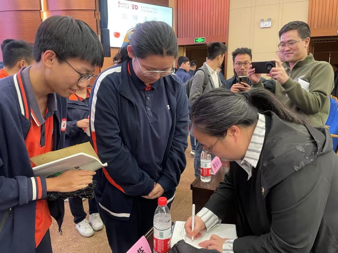 讲座结束后,同学们依依不舍,久久不愿离去,自发排队,或继续提问,或签名合影。讲座虽然结束,但文学之旅刚刚开始,李燕燕一叶知秋的细心,带着同学们发现生活中的细节,最终流动成笔下内心的细腻。