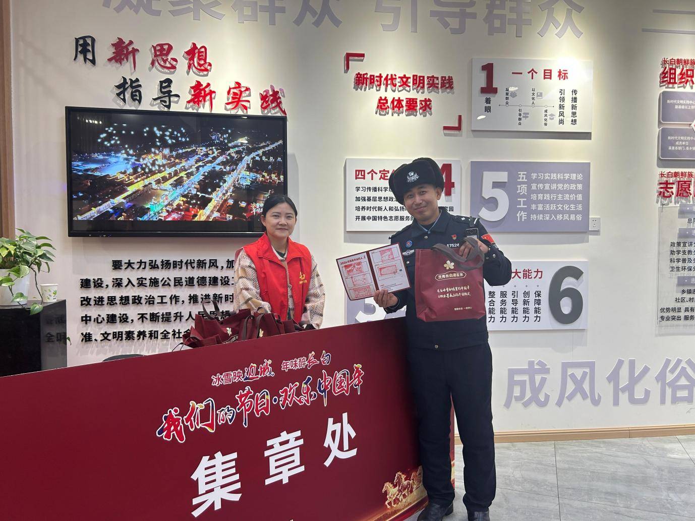 本次活动的一大创新亮点,是趣味十足的集章玩法。每位参与者都能领到定制打卡券,在“非遗传承区”“笔墨迎春区”“长白·雪国邮局”“心愿区”“土特产展销区”体验后,可依次收集对应印章。集齐五枚印章即可兑换新春礼包,让参与者在感受文化魅力的同时,收获满满的惊喜。这种“闯关式”互动不仅提升了活动的趣味性与参与感,更引导大家全方位沉浸式体验各区域特色,让年味在打卡过程中愈发浓厚。