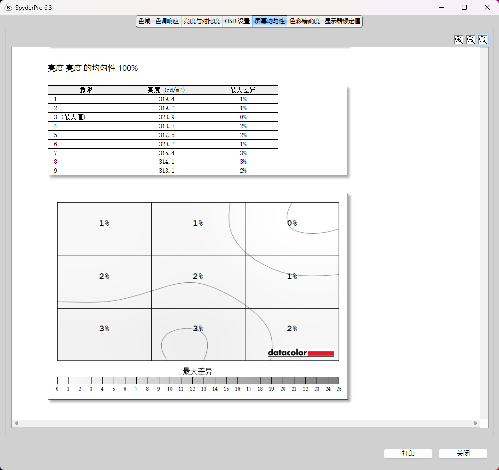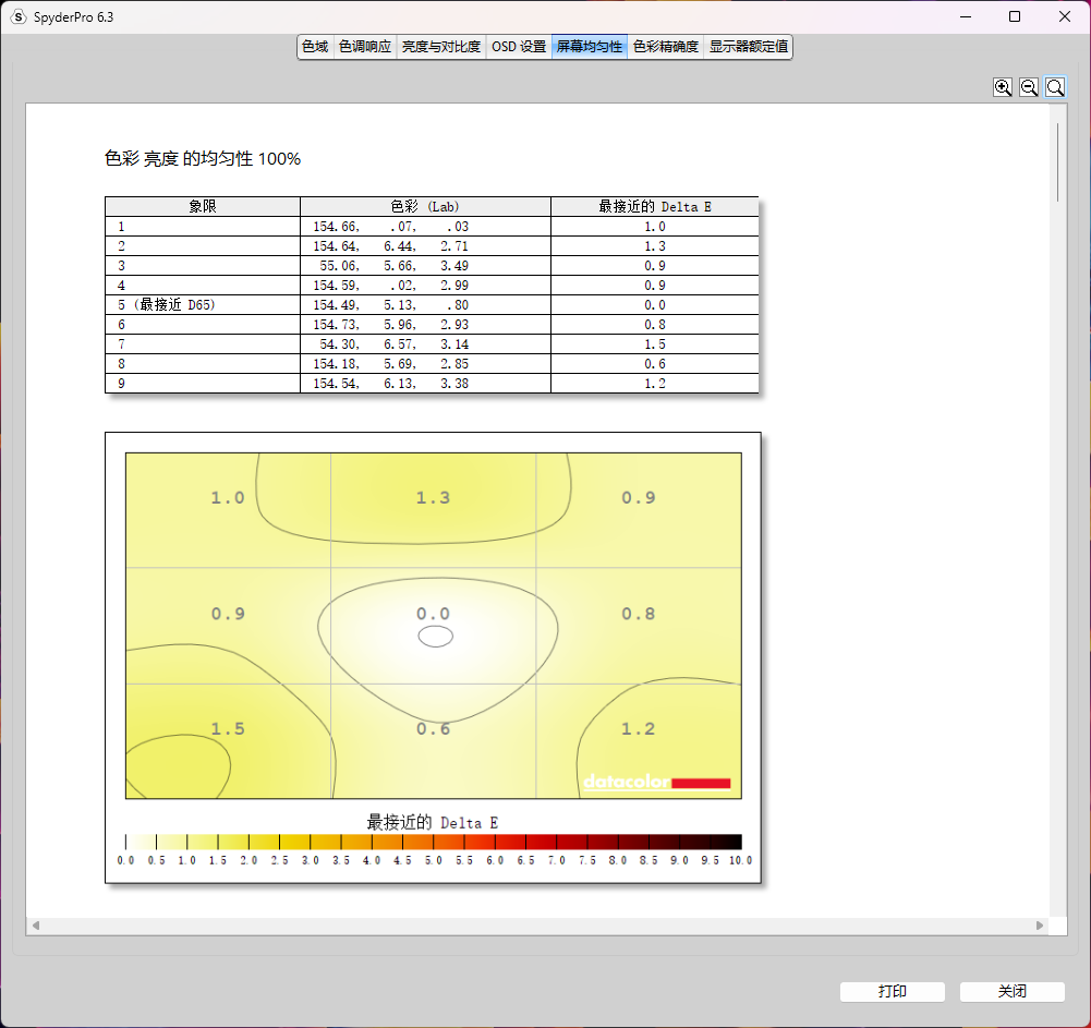 色调测试曲线紧贴2.2光度曲线,屏幕均匀性测试中色彩平均度和亮度平均度均表现出色。