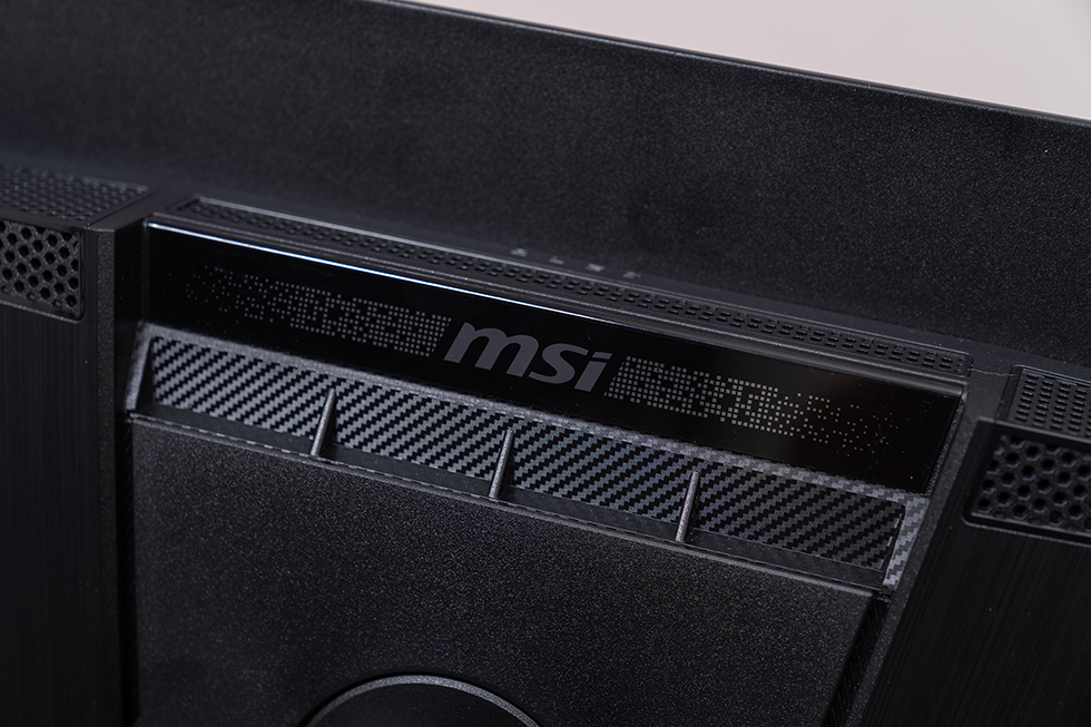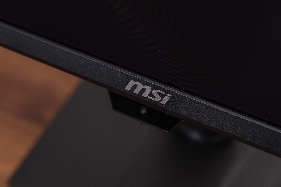 显示器延续微星 OLED 家族的简约基因,采用三面极窄边框设计,底部居中的 MSI 金属 Logo 彰显身份,视觉聚焦度十足。最具辨识度的是 Logo 正下方的 "小下巴" 组件,内置 CMOS 传感器与 NPU 芯片,这也是其 AI 功能的核心硬件基础,下方搭配低调的状态指示灯,整体布局兼顾功能性与设计感。