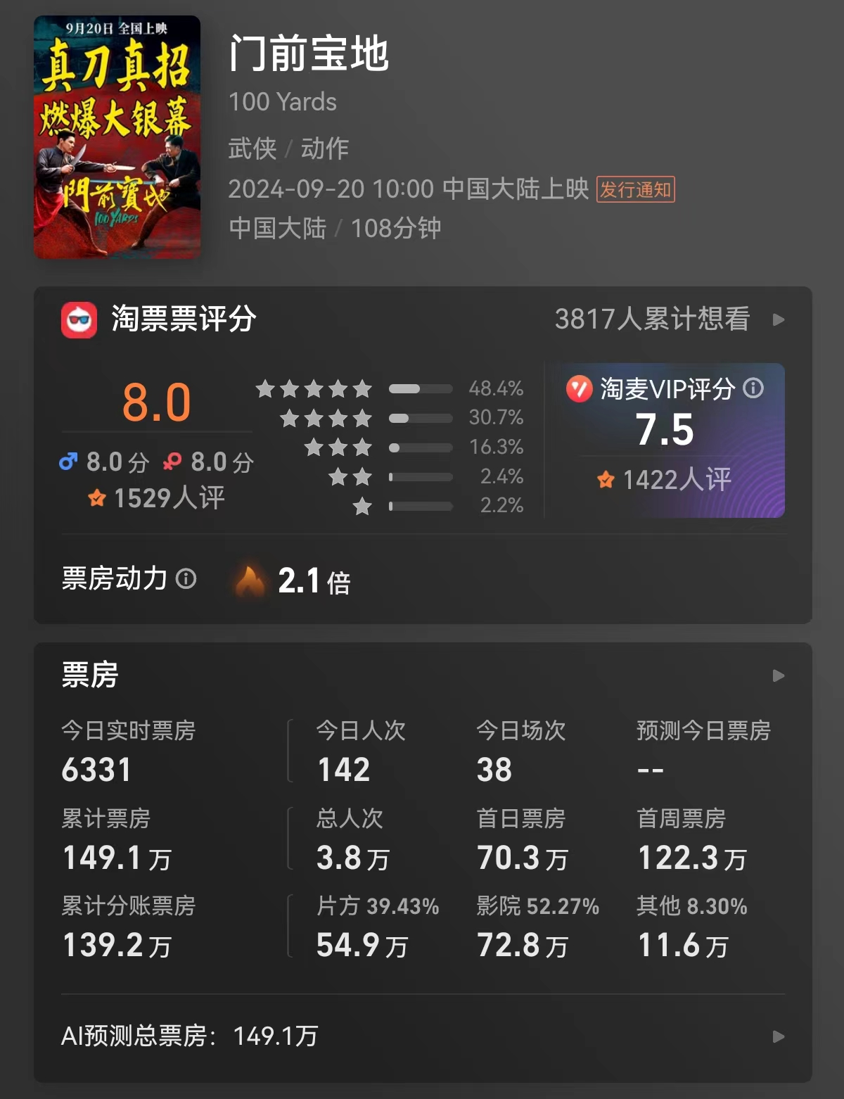 《门前宝地》本质上并不是喜剧,甚至和喜剧都不沾边,导演徐浩峰本身就是武侠题材的老手,他希望可以通过这部影片重塑武侠精神,可是这部电影却凭借“搞笑”吸引网友们的关注,但不可否认的是,这部电影确实出圈了,这是很多人都羡慕不来的。