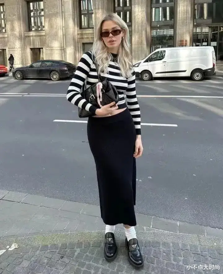 比如黑色的直筒半身长裙搭配黑色的乐福鞋,视觉显高又显瘦,省心搭配自然时尚。▼
