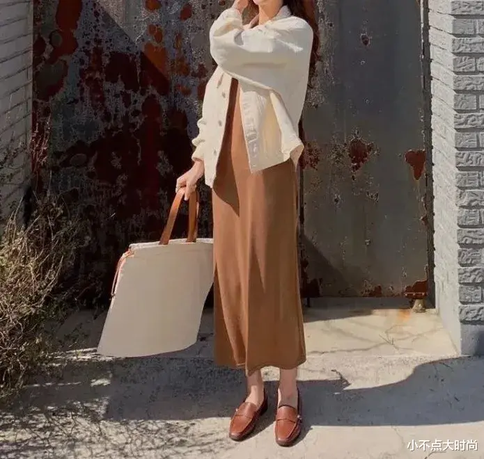 白色长裙干净文艺,搭配一双棕色调的乐福鞋,简约复古有质感。乐福鞋的颜色又跟西装外套相呼应,协调舒服有高级感。▼