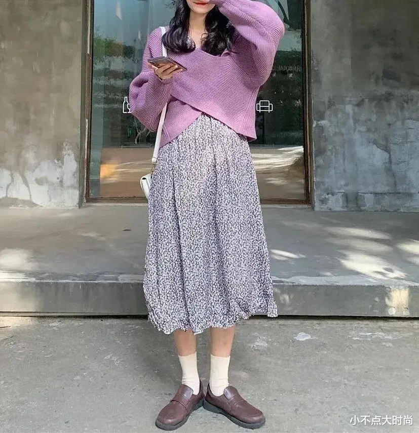 小个子初秋穿印花半身长裙,浪漫又优雅,搭配简约的棕色系乐福鞋,增添季节氛围感,让穿搭温柔气质又有复古格调。▼