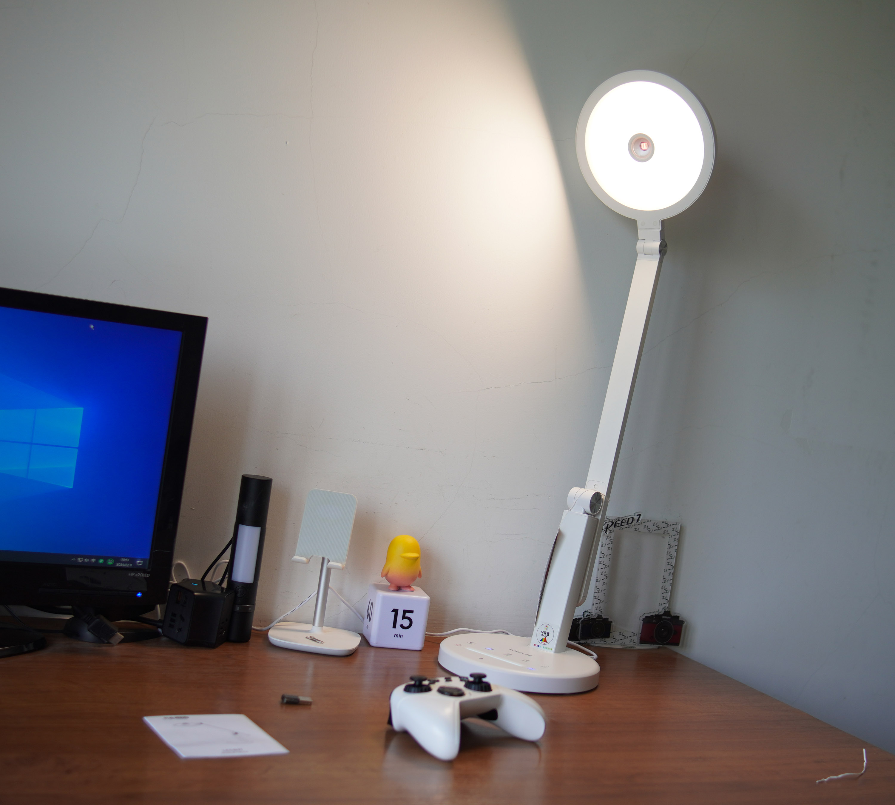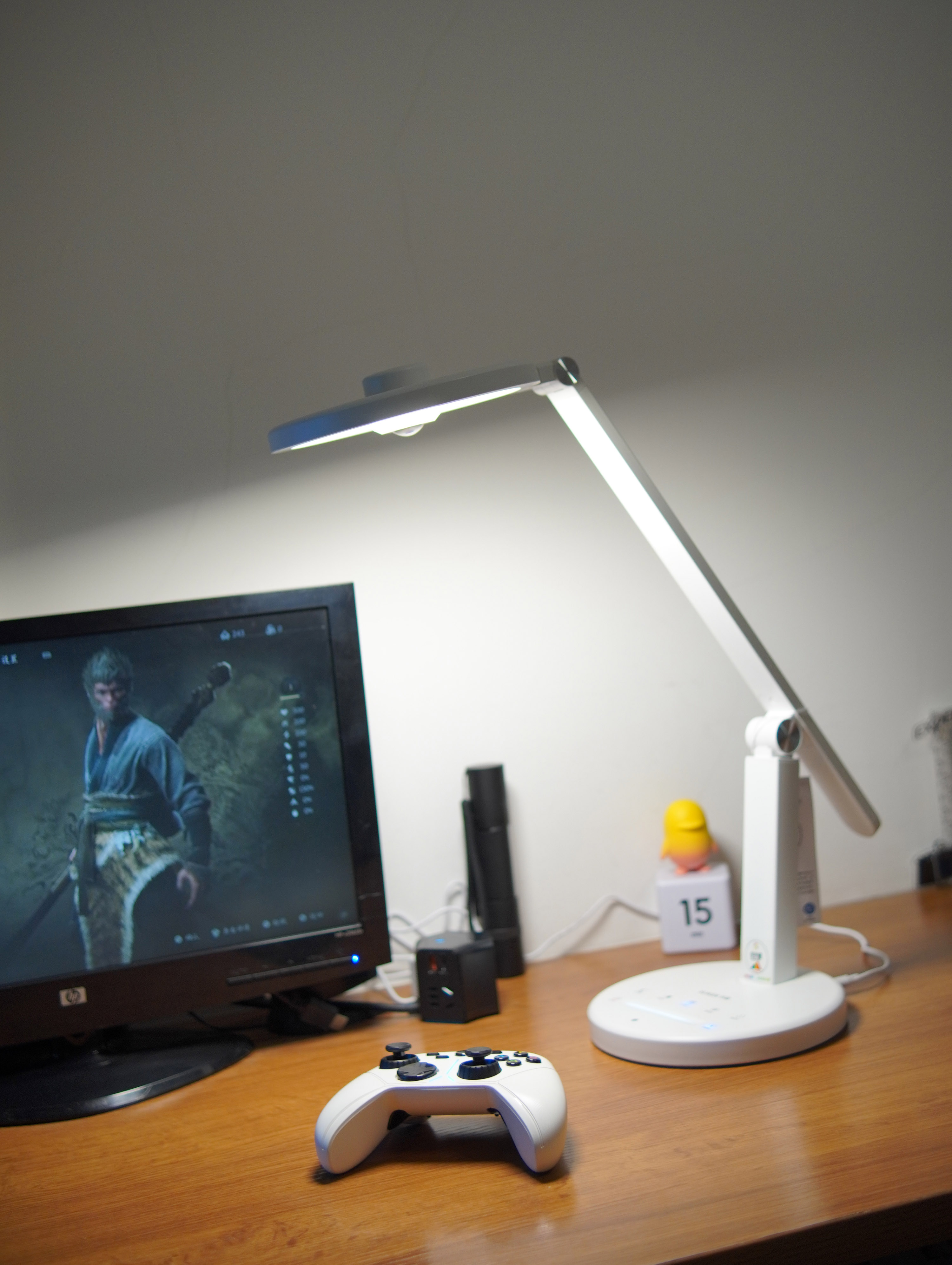 控制面板前的圆点是个环境感知传感器,书客护眼台灯L2 Pro搭载了第3代SDIT自适应智能调光技术。它能够每秒120次地监测环境光线变化,并通过智能算法精确预测和响应光线变化。这种技术确保了光谱的均匀性和稳定性,减少了眼睛的视觉疲劳感。在实际使用中,我能够明显感受到光线随着环境光线的变化而自动调整,非常贴心。