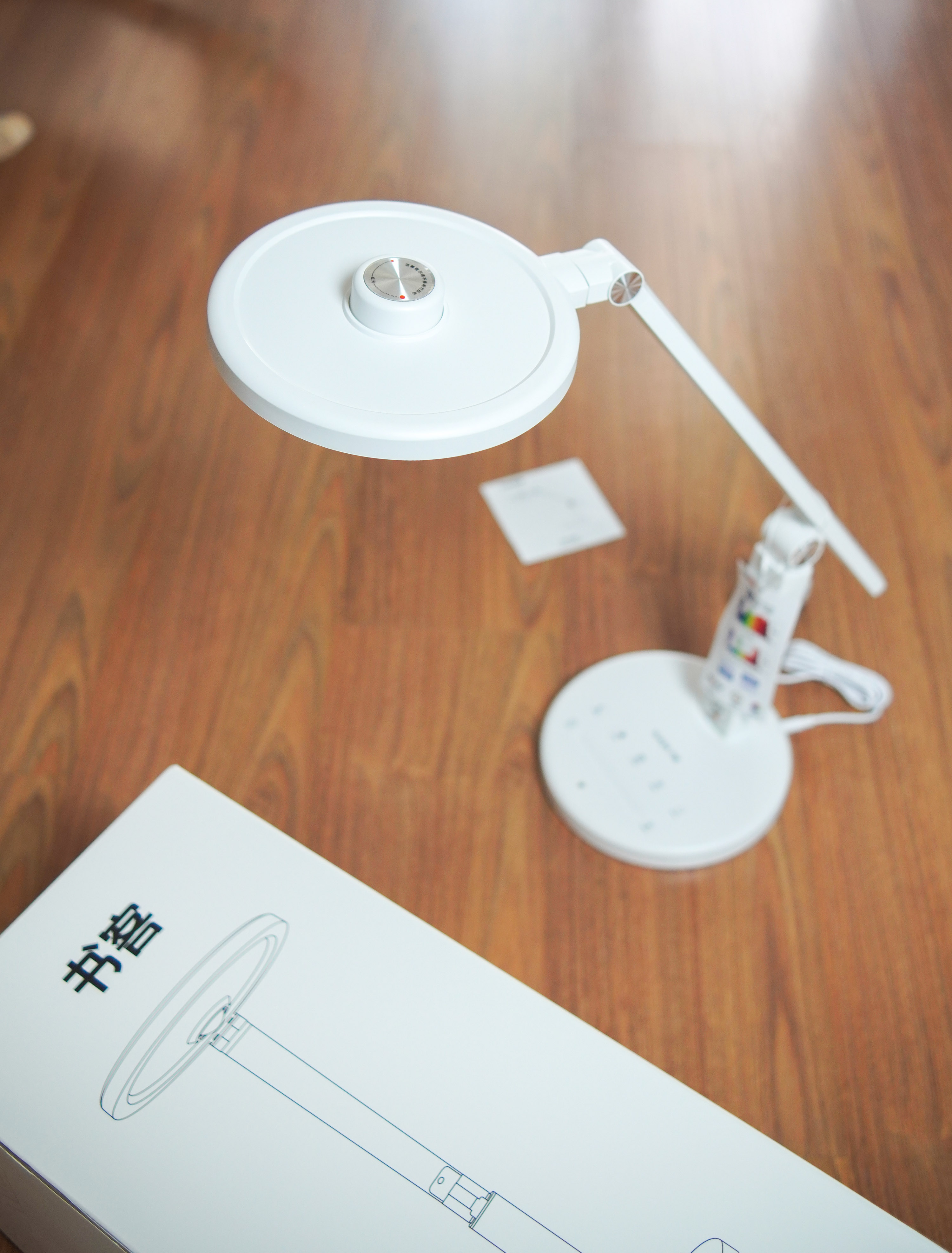 包装内配备的电源线插入台灯底部的插座,并接通电源,随着底座上的指示灯亮起,书客护眼台灯L2 Pro正式进入工作状态。