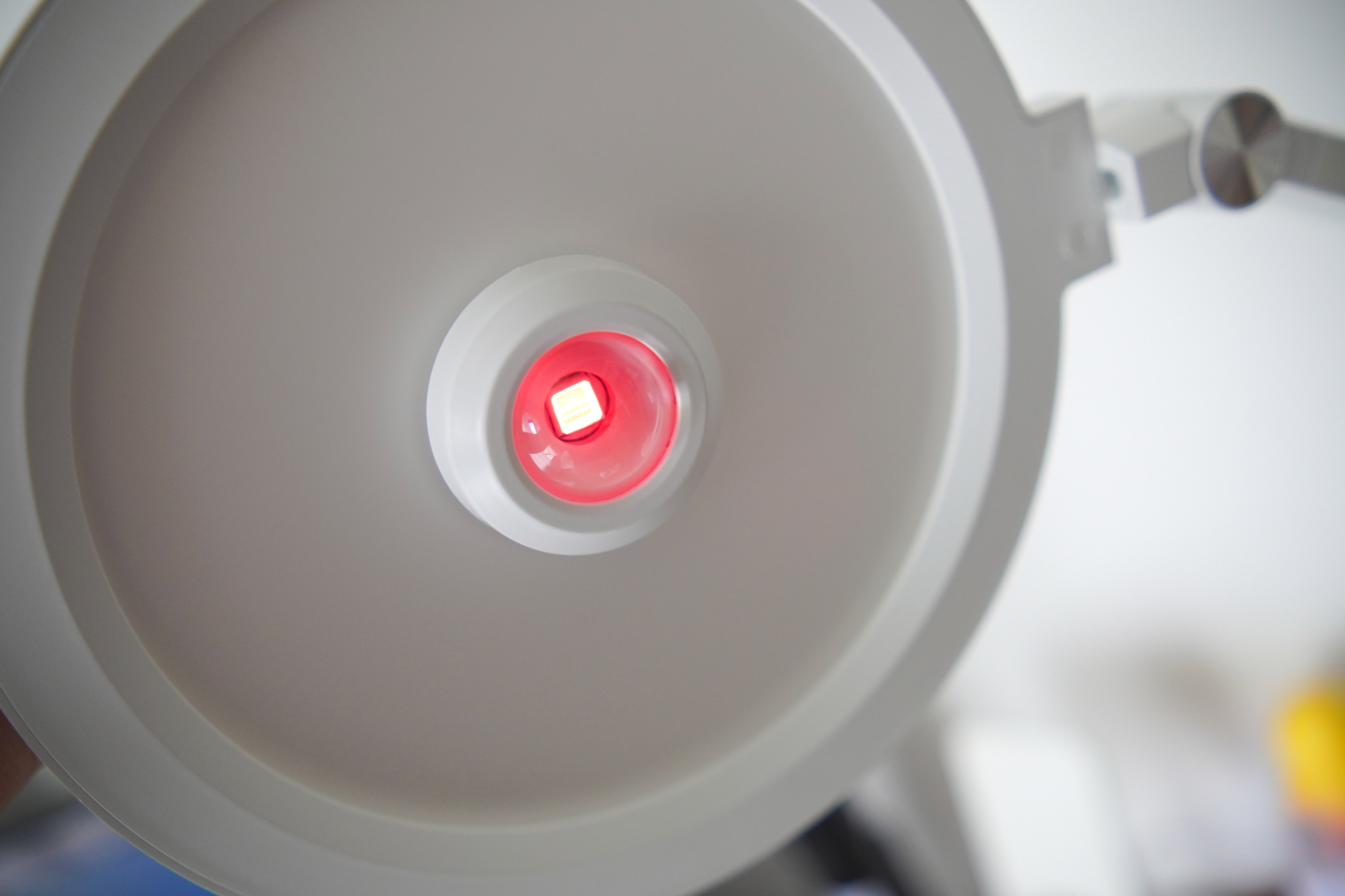 令我印象深刻的是这款书客护眼台灯L2 Pro的灯罩上多了一个多了透明灯珠,背部还拥有调节旋钮。原来这就是其自研创新三档红光调节功能,旋钮可以进行红光均匀性调节。针对不同年龄段视力发展情况调整红光参数的技术,例如视觉敏感期、学习成长期或视觉成熟期来调整红光参数。通过增强红光的波段,为眼睛补充红光“营养”,修复受损视网膜细胞,改善视力状态。
