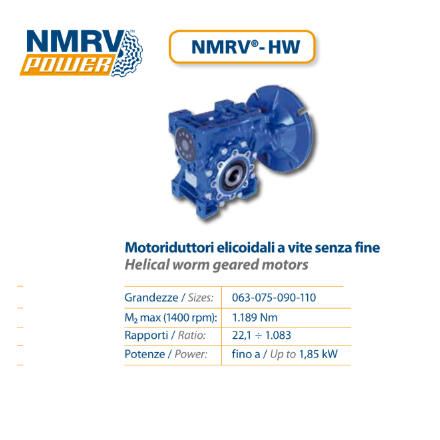 • 型号组合:HW030/HW040 预级 + NMRVpower 063/075/090/110(仅 NMRVpower 适配 HW 预级)