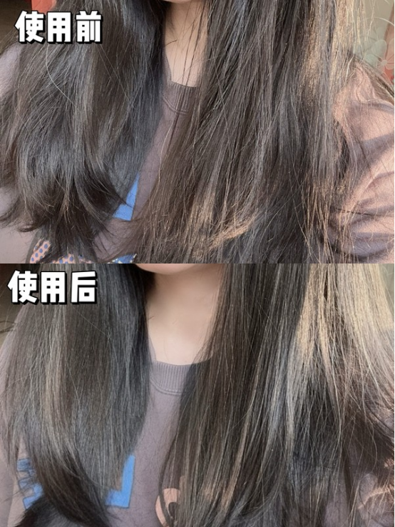 而湿发下使用的话,只需要在洗发后,头发到半干状态下涂抹在发梢,再用梳子梳理均匀,自然晾干即可。坚持使用一段时间后,能看到头发有着非常明显的改善,干枯毛躁的情况消失了,变得柔顺亮滑还有光泽,摸起来软软的还散发着一股淡淡的清香,客户们和我说她们非常喜欢这样的效果!