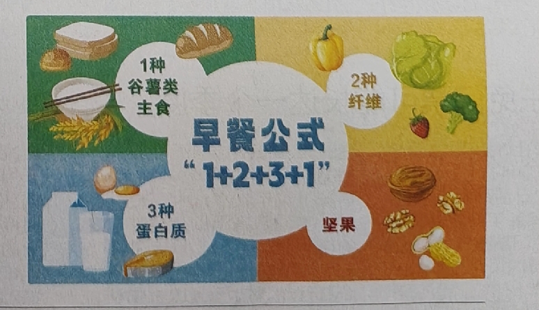 早餐高质量公式一份高质量早餐要食物多样、搭配合理,根据中国居民膳食指南(2022)》,可提炼出一个早黄金公式——“1+2+3+1”,只需将食物“套入”其中,便可搭配出一份较理想的早餐。
