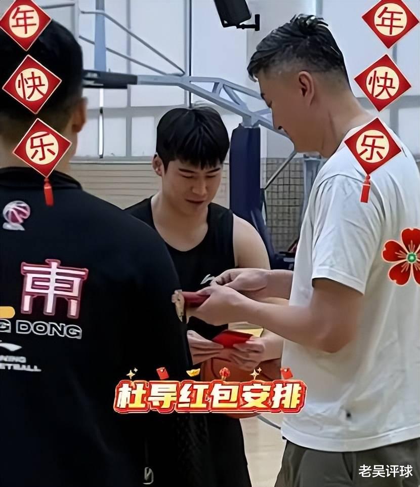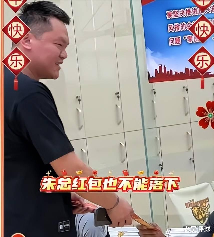 首先杜锋给球员一一发了大红包,接着是领导朱芳雨给大家发红包,球员都一一谢过主教练和总经理。相信球员拿到红包,更有动力来训练和比赛。