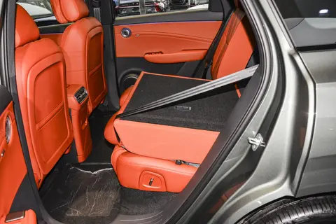 空间表现是家庭用车的重要考量因素,红旗HS6 PHEV在这方面的表现可以说是亮点颇多。笔者邀请了一位身高180cm的体验者进行实际测试,在前排调整到合适坐姿后,头部空间约有一拳的余量,横向空间也相当充裕。来到第二排,这位体验者的腿部空间约有两拳的余量,头部空间同样保持在一拳左右,对于长途出行而言,这样的空间表现足以保证乘坐舒适性。第二排座椅支持靠背角度调节,还配备了加热和通风功能,在舒适性配置方面相当到位。后备箱空间表现也值得称道,常规容积为503L,加上49L的隐藏空间,实际储物能力相当不错。当第二排座椅按40:60比例放倒后,储物空间可扩展至1977L,完全能够满足家庭出行的各种装载需求。新车还配备了31处"百宝格"储物系统,可藏、可固、可挂的设计理念让车内空间利用率得到了最大化。