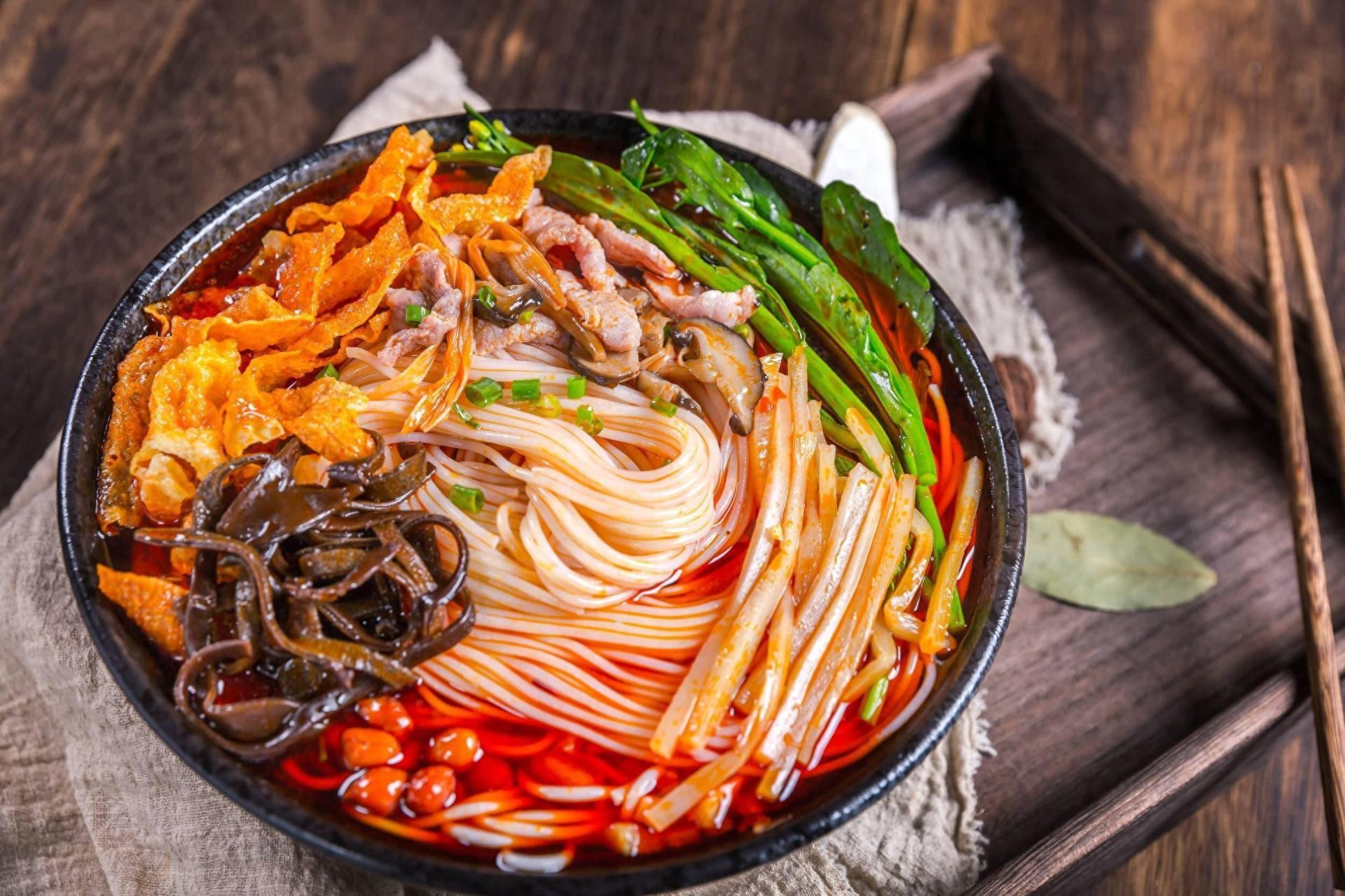酸笋的浓烈、螺汤的鲜醇、辣椒油的炽热……一碗螺蛳粉端上桌,瞬间点燃深夜的食欲。米粉爽滑弹牙,腐竹吸饱汤汁,酸豆角和花生增添脆香。柳州人常说:“一天不嗦粉,浑身不自在。”