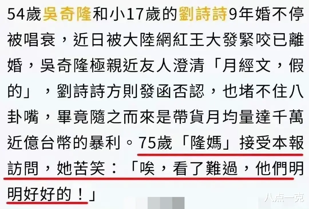在屡次被传婚变后,刘诗诗也发布了律师函辟谣,但依旧没有堵住悠悠之口。对此吴奇隆75岁的母亲在接受采访时也无奈苦笑,哎,看了难过,他们明明好好的!
