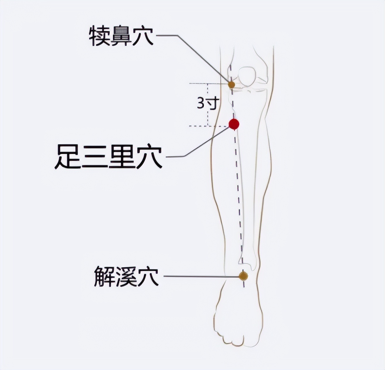 定位:外膝眼下3寸(四横指),胫骨前嵴旁开一横指。