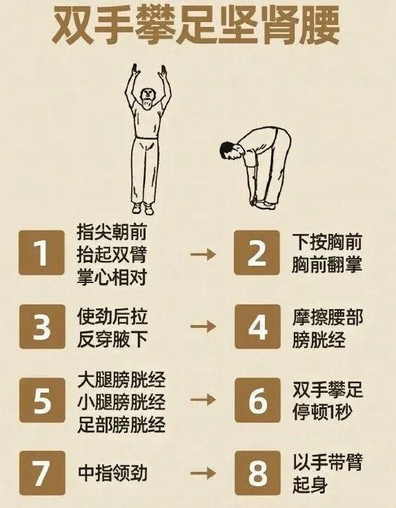 作用:俯身攀足,拉伸膀胱经,温补肾阳。