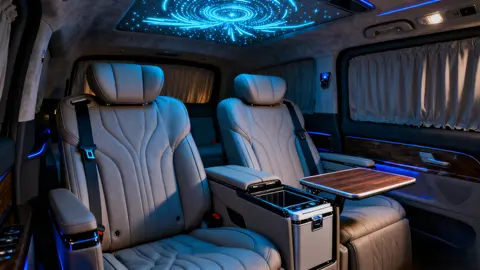 坐进车内才懂什么叫“移动宫殿”。四座版的后排独立座椅堪比私人飞机配置,通风、加热、按摩功能一应俱全,中央扶手藏着车载冰箱和折叠小桌板,劳斯莱斯同款星空顶搭配激光投影,氛围感直接拉满。3370mm的超长轴距让180cm的乘客坐后排也能轻松翘二郎腿,彻底告别局促感[__LINK_ICON]。