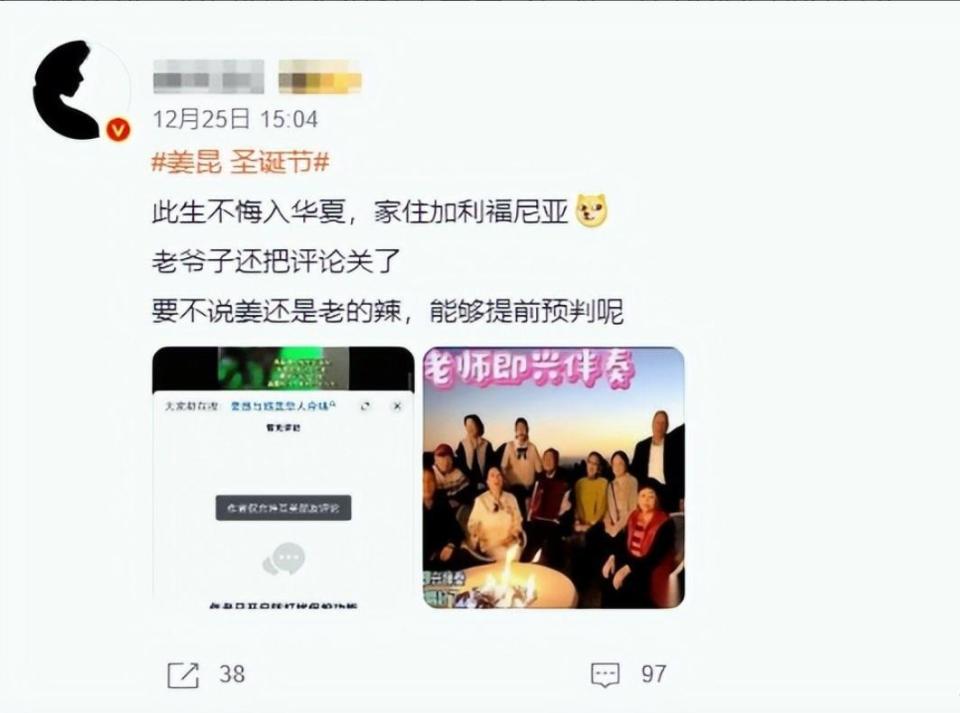 这两天,姜昆的名字又一次被推上了风口浪尖,而且方式一点都不新鲜——一段来路不明的视频,加几句带节奏的解读,就把一个干了一辈子曲艺的老艺术家,直接推成了“人在美国过圣诞”的典型素材。