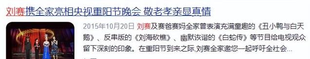 资料参考:2015-10-20红网——刘赛携全家亮相央视重阳节晚会 敬老孝亲显真情