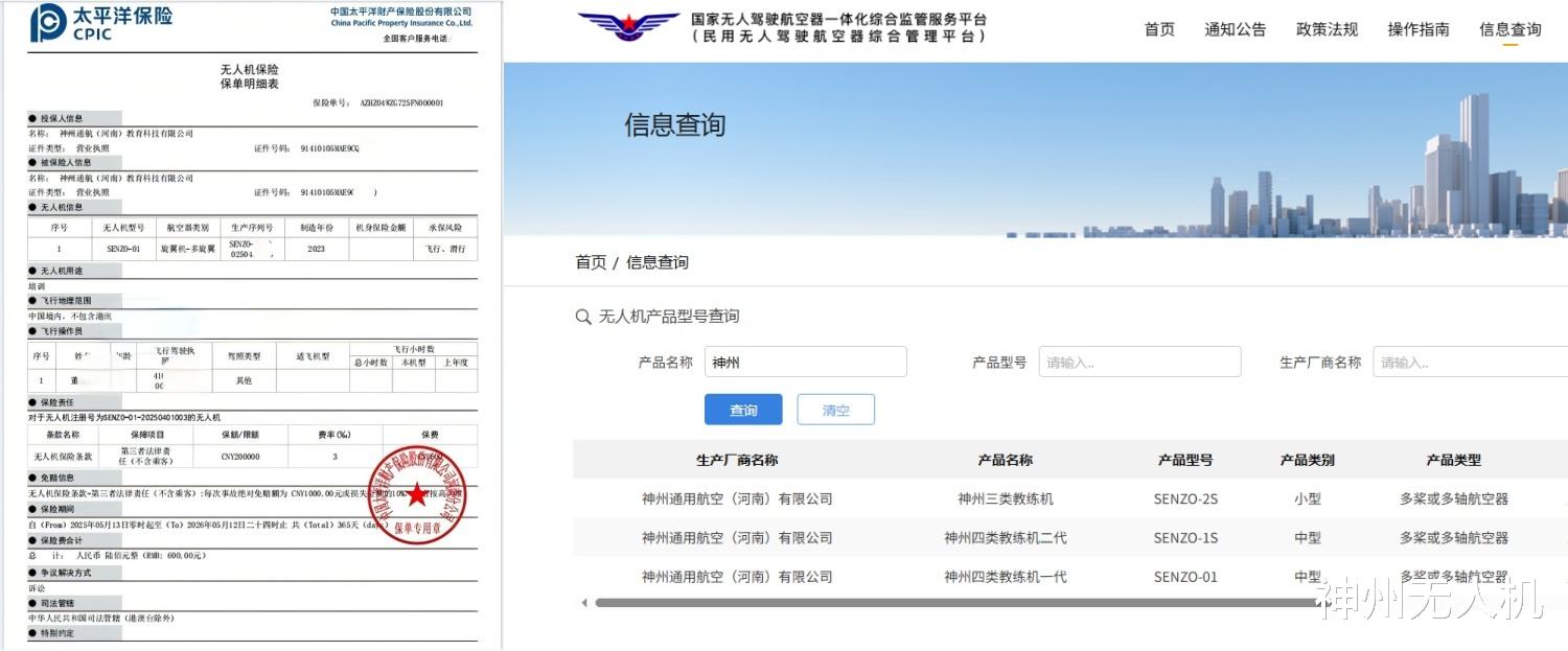 基石:合规可靠,解决准入与保障痛点 神州深谙合规是行业应用的基石。SENZO系列三款机型均严格遵循国家监管要求,成功在中国民用航空局完成备案。这一关键步骤不仅是合法运行的通行证,更直接打通了重要的后续保障环节——用户可基于此合规身份,顺利为设备购买足额商业保险,有效转移运行中的财产与责任风险,解决了用户最大的后顾之忧。在产品物理特性上,神州也精准对标了行业对设备性能的硬性门槛:空机重量稳定控制在15kg级别,最大起飞重量可达45kg,完全满足相关操作资质考核中对设备类别的核心指标要求,为用户的应用前景奠定了坚实基础。