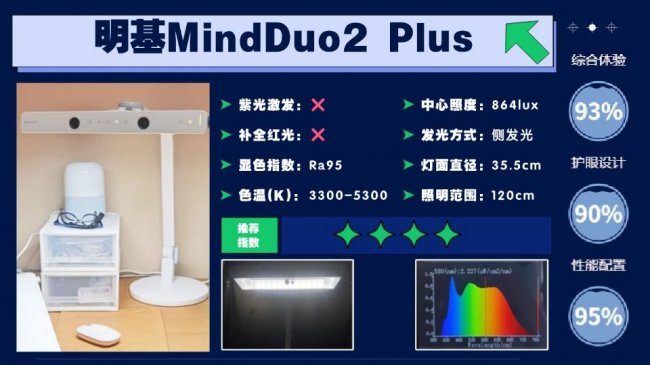 护眼灯品牌排行第一名有哪些牌子?明基MindDuo2Plus这款台灯最大的特色在于智能化的功能体验:它的功能位于灯头,低年级的孩子可能触摸不到,所以入座自动亮灯和离席延时关闭的设计免去了孩子手动操作的麻烦,此外最有亮点的是他有坐姿侦测功能,当坐姿不端正的时候可以及时提醒,对正在养成习惯的孩子来说有帮助。再来看看它的光源配置,采用的是隐藏式光源,创造出来的18°的遮光角可以将光源藏起来,能在一定程度上避免孩子直视。