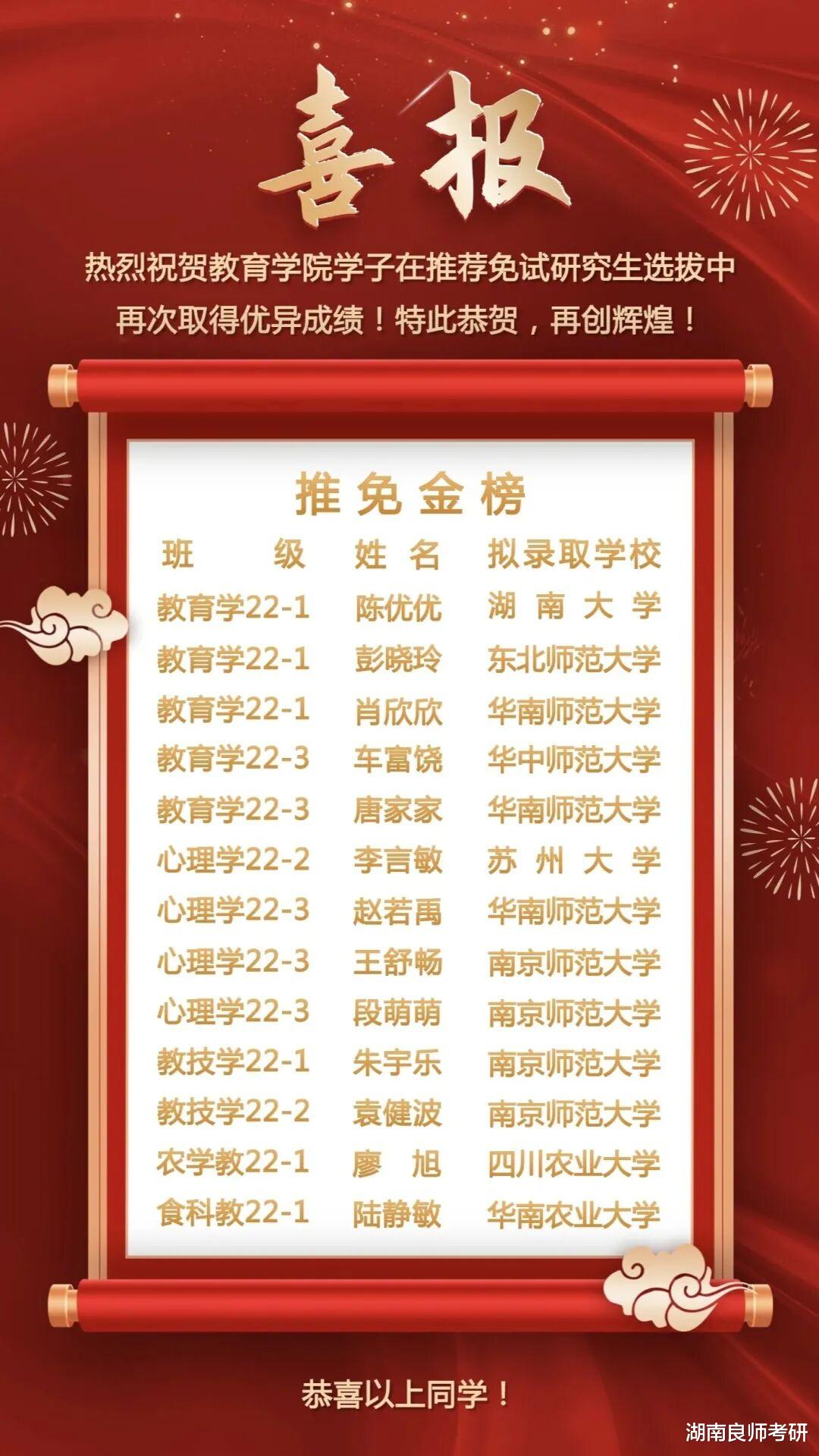 教育学院2022级学子在推免中脱颖而出,成功获得攻读硕士学位的资格,他们将陆续进入湖南大学,东北师范大学等多所高校,继续书写人生新篇章。