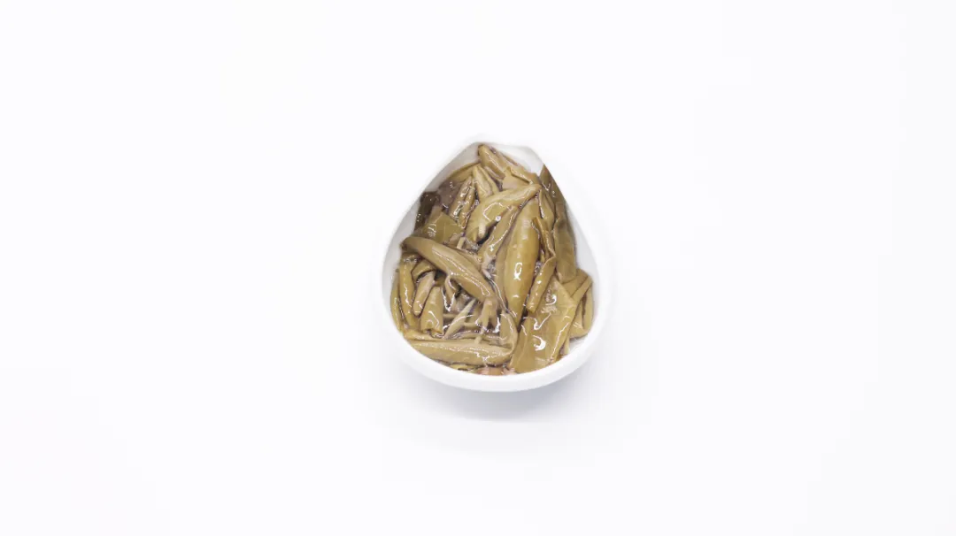 莼菜好似小荷叶,它通常是浮躺在水面上的,其最具特色的地方是茎叶附有胶状透明粘液,就如同饱满的果冻一般,晶莹剔透,而入口又爽滑鲜脆。农历三月和七月出产的莼菜是最为纯美的,三月初生的莼菜名为稚莼或丝莼,到了七月,莼菜又长出新芽,名为秋莼,味道和三月新生的莼菜一样鲜嫩。莼菜自古以来就被视为珍稀的蔬菜,由于产地、产量和收获时限等诸多因素,所以在家常菜中很难吃到它,在古时候更难出现在寻常人家的餐桌上。