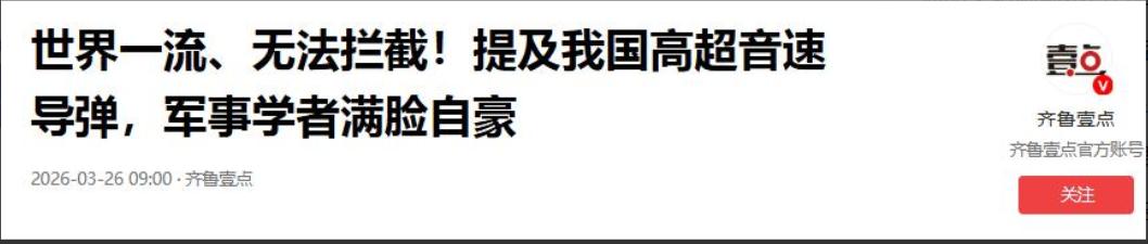 参考资料:世界一流、无法拦截!提及我国高超音速导弹,军事学者满脸自豪