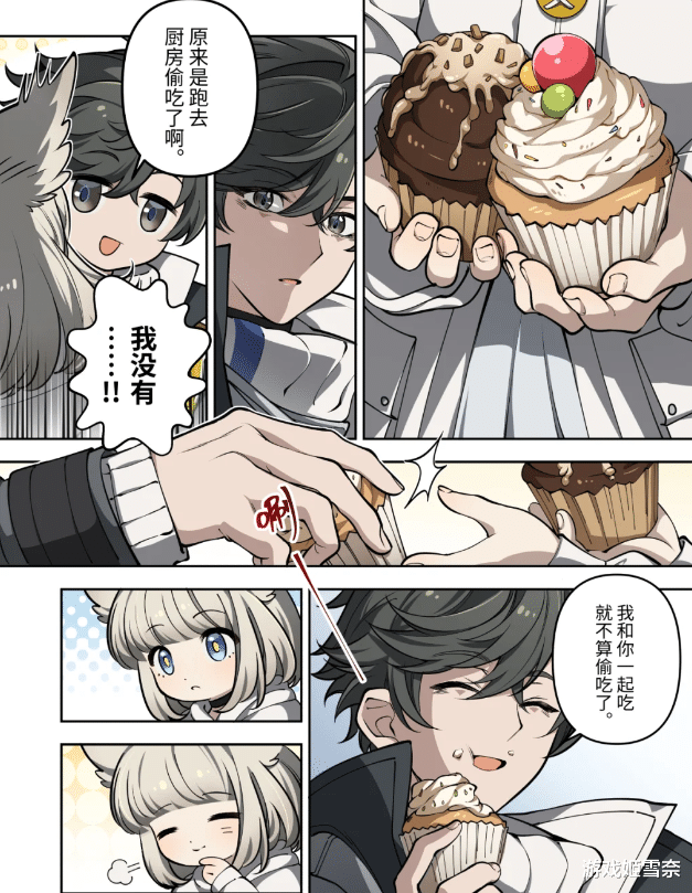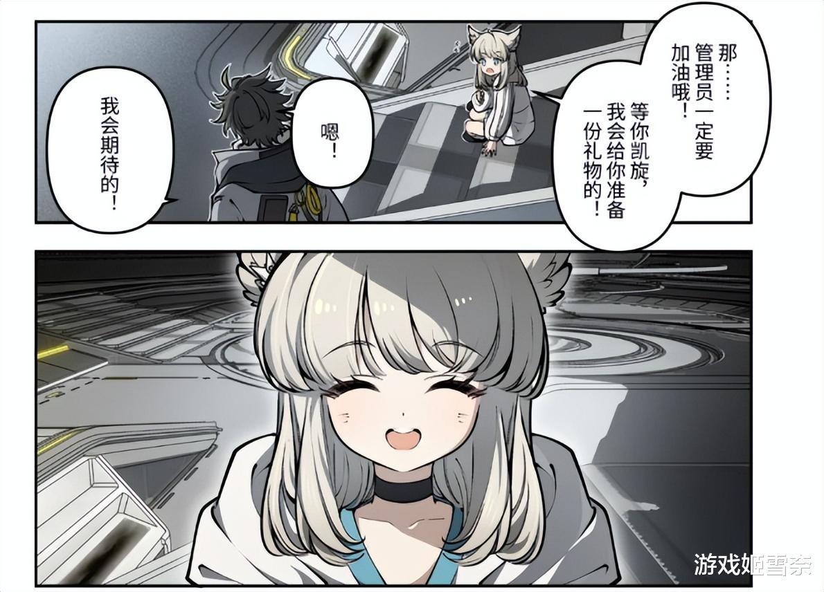 还有各种甜蜜小日常,管理员熬夜加班小佩丽卡背着手跑到指挥室给管理员带了小蛋糕,两人并排坐在一起倾诉心声,管理员倾诉着自己对远征的担忧,和小佩丽卡许下诺言自己一定会回到大家身边,佩丽卡也高兴的说着自己会在管理员回来的时候送给他重要的礼物,只可惜,远征回来的管理员已经躺入了石棺,小黎博利那贵重的羽毛也没能送到管理员手里。