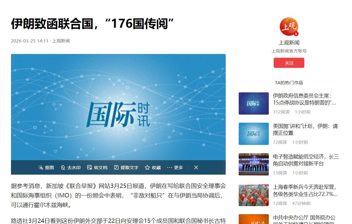 伊朗把照会递到176个国家手里,等于是在问这些国家一个现实问题:你们是否愿意因为站在美国这边,让自己的油轮失去通行保障?